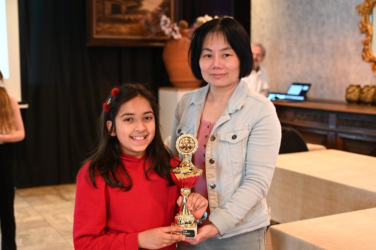 Veel Zukertorters gingen met prijzen naar huis. Akshaj was de absolute koning van het toernooi. Met een perfecte score van 9 uit 9 hield hij iedereen op ruime afstand (nummer 2 kwam tot 7 punten). Van harte gefeliciteerd Akshaj! Hij mag zich een jaar lang kampioen van de SGA noemen. Hij had zich al geplaatst voor het NK. We zijn benieuwd hoe hij het er daar vanaf gaat brengen. Reyansh had ook een uitstekend toernooi: hij werd prachtig vierde (en zelfs bijna derde) en mag ook naar het NK! Aashray moest, met twee anderen, nog een barrage spelen om de laatste NK-plek: zijn toernooi duurde dus nog een paar (korte) rondes langer. Hij won de barrage en mag dus met Reyansh en Akshaj mee naar het NK. Anika had zich al gekwalificeerd voor het NK-D, omdat ze vorig jaar Nederlands kampioen werd. Daardoor schoven kwalificatieplekken voor het NK-D voor meisjes door: Navya profiteerde daarvan en mag dus samen met haar broer naar Rijswijk. Achyuth had zich ook al geplaatst en Hidde kreeg een vrijplaats op basis van zijn rating. In totaal kunnen we straks dus de belevenissen van liefst 7 NK-gangers volgen!
